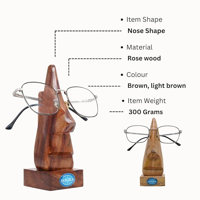 Wooden Nose Spectacles Holder